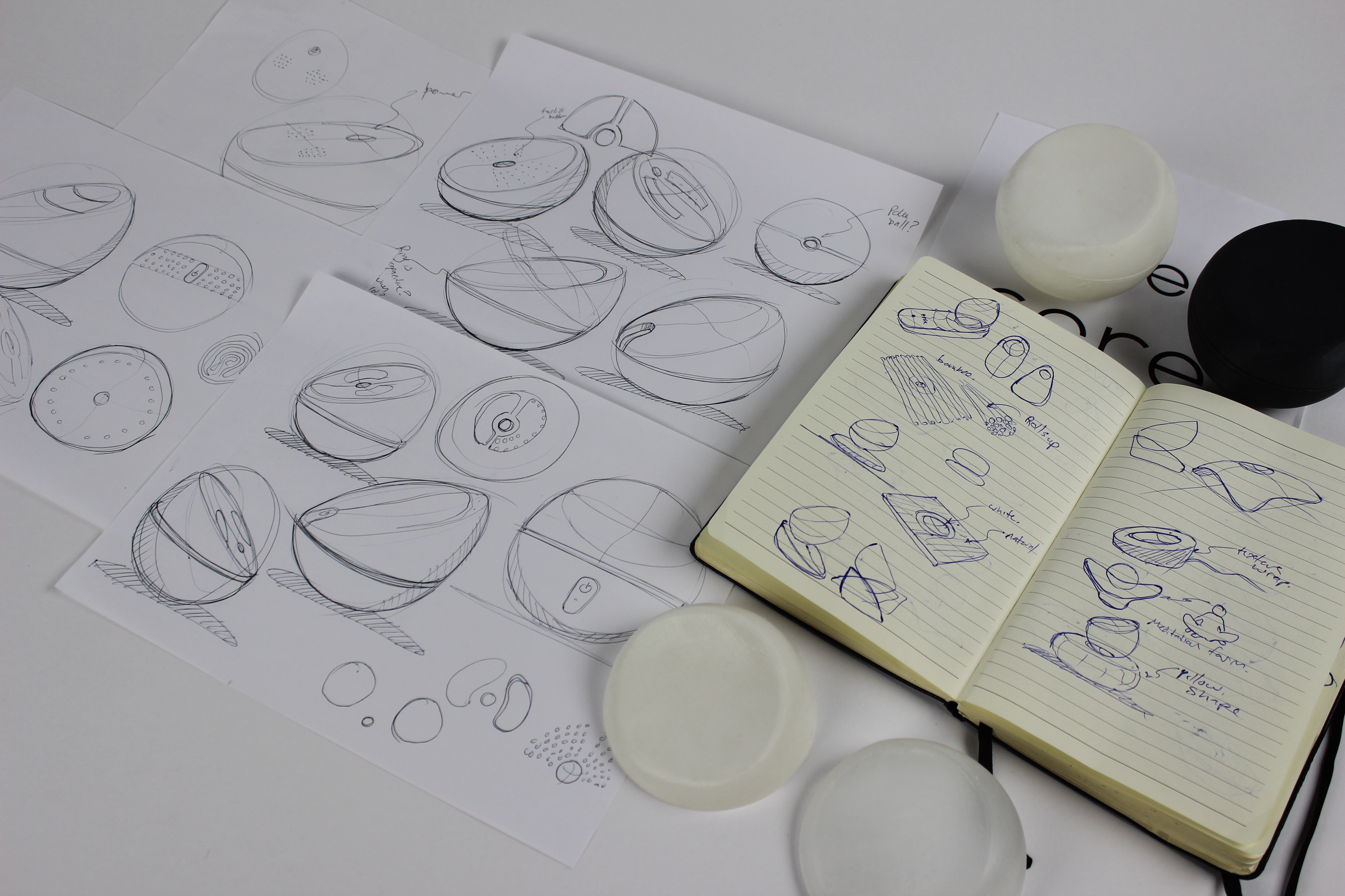 The last thing you want to think about while meditating is the device you are holding. Therefore, the main design challenge involved refining the overall shape and the electrode pattern. We wanted a beautiful object that felt comfortable in the hands of someone meditating in a variety of positions. The slightest iteration made huge differences to the feel of the device. After several rounds of tweaks, we finally nailed it.